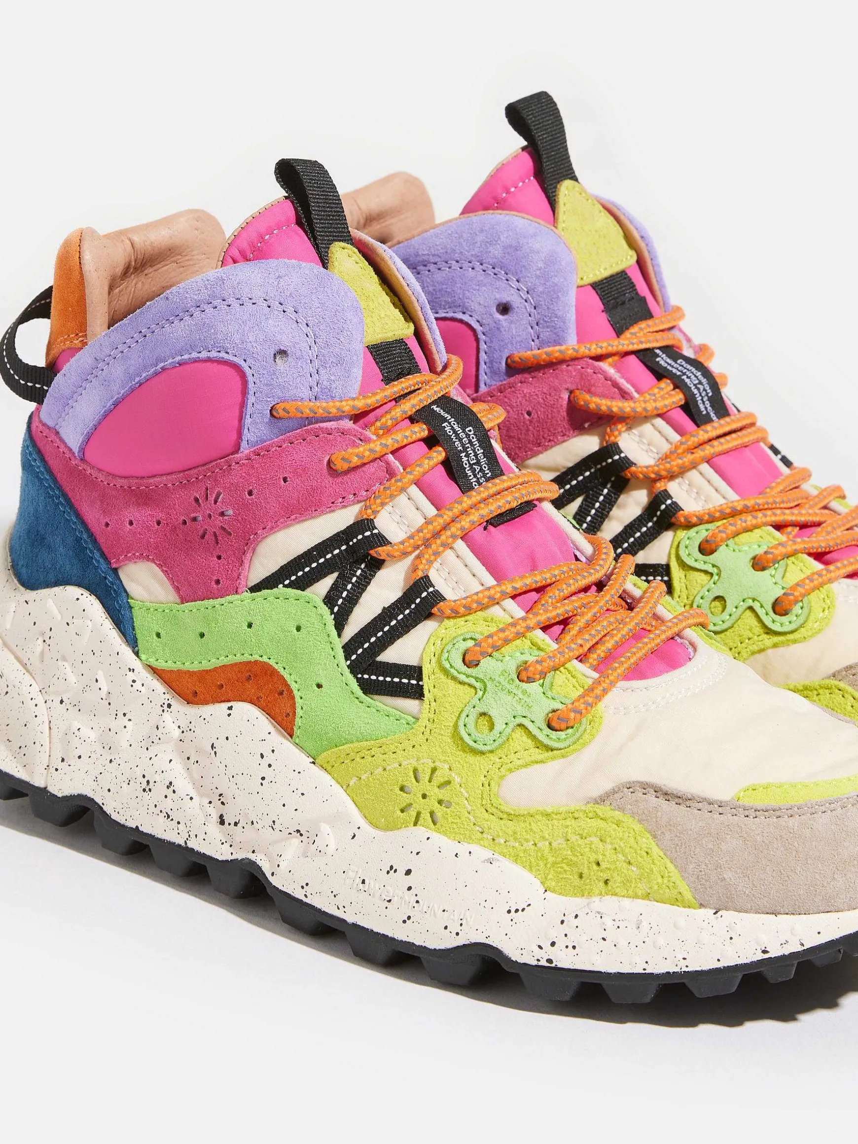 Dynamic Shapes And Eighties Shades Add Character To This New Mid-Rise Yamano. The Breathable Technical Fabric Upper Is Given Rhythm By Multi-Colored Suede Overlay Inserts, Complemented By Trekking Laces And Technical Ribbons That Act As Eyelets. The Antibacterial Natural Cork Insole Protects The Foot While Ensuring All-Day-Long Comfort. Flower Mountain Is A Japanese Sneaker Brand Born Through A Shared Passion For Trekking, Camping, And Footwear, Bringing People Closer To Nature With Sneakers Perfect For Sporty Souls Looking For A Refined Look.