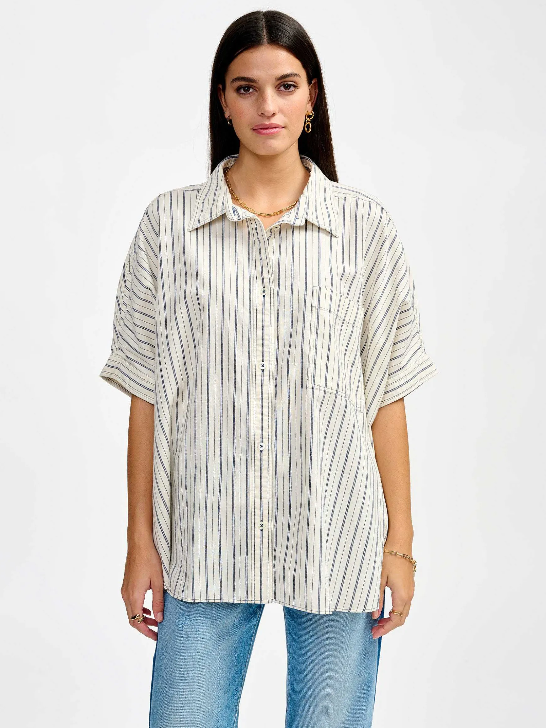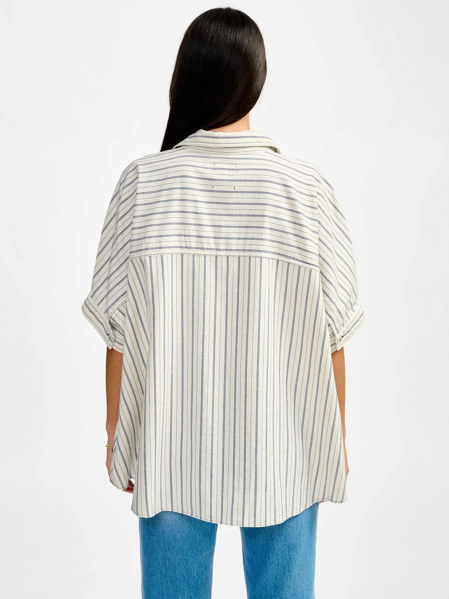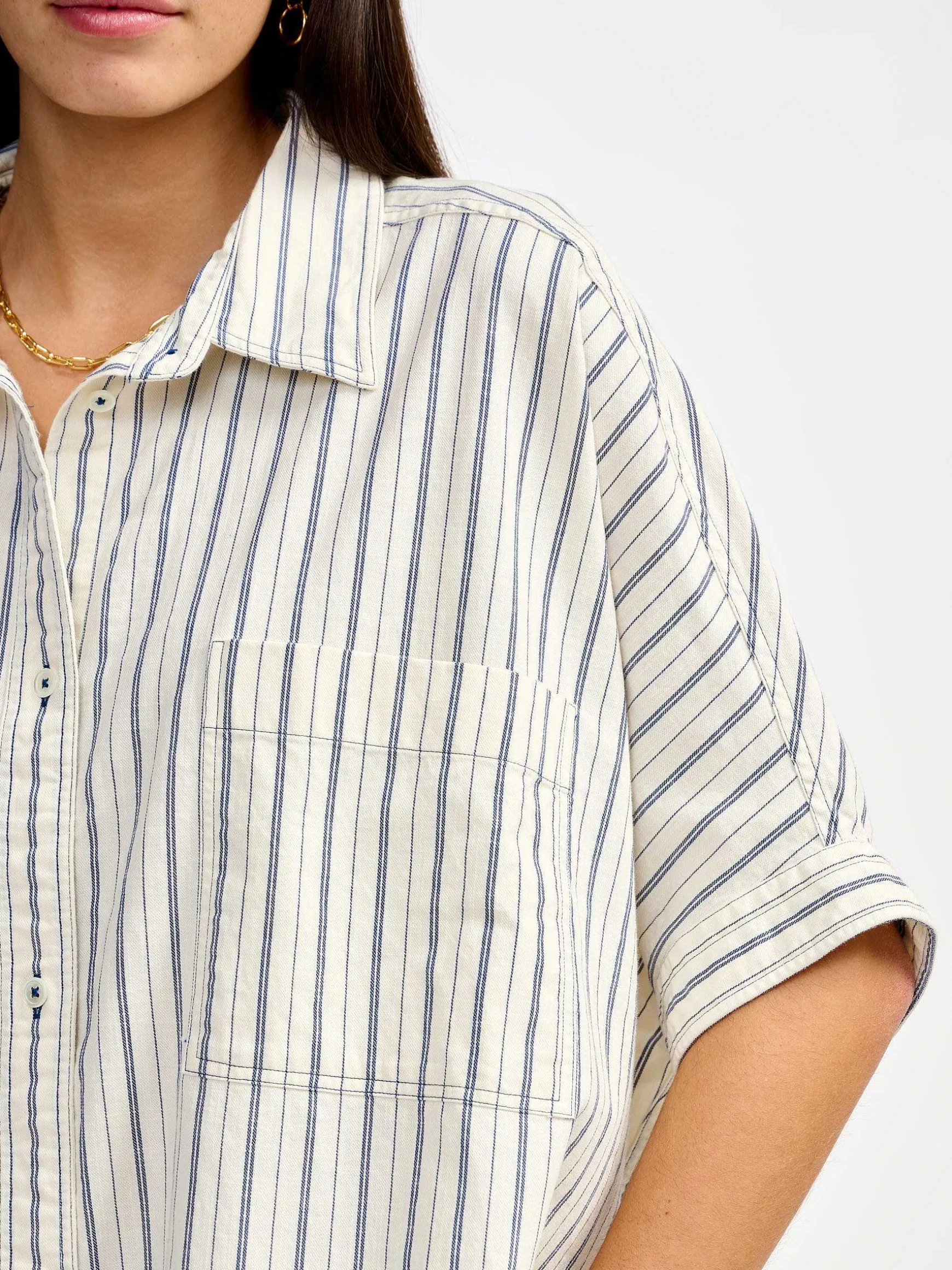 Inspirée De Notre Best-Seller Glenn, La Chemise Gaudi Dynamise Votre Silhouette Grâce À Une Coupe Boxy Longue, Un Volume Oversize Et Un Drapé De Coton Léger. Subtilement Vintage Avec Ses Rayures Indigo, Elle Ira À Ravir Avec Vos Jeans Et Vestes En Denim.