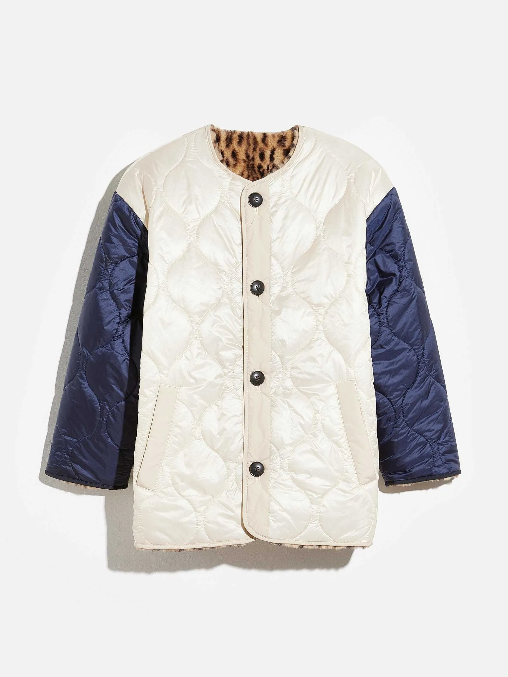 Double Jeu, Double Gain. Pleine De Surprises, Havanas Est Entièrement Réversible. D’Un Côté, Une Fausse Fourrure Léopard Super-Douce Au Style Très Grrr ! De L’Autre, Une Veste Universitaire Matelassée En Vagues Avec Des Manches Contrastées Pour Un Look Résolument Rétro. Le Total ? Un Modèle Audacieux Qui N’A Pas Froid Aux Yeux.