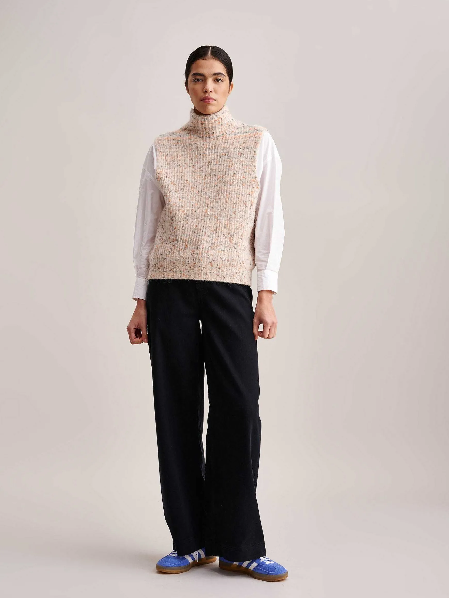 Le Layering Mode N’Est Pas Bien Compliqué Quand On A Les Bons Ingrédients. Lattem Est Une Pièce De Choix Pour Vos Looks Superposés. Moucheté D’Une Palette De Tons Chauds Et Doté D’Un Col Montant, Ce Pull Sans Manches Est Tricoté En Maille Italienne De Laine Mérinos Extra Fine, Baby Alpaga Et Coton Mélangés. Chic Et Versatile, Vous Pouvez Le Porter Seul, Sur Un T-Shirt, Un Col Roulé, Une Chemise Ou Même Une Robe… Tout Est Permis !