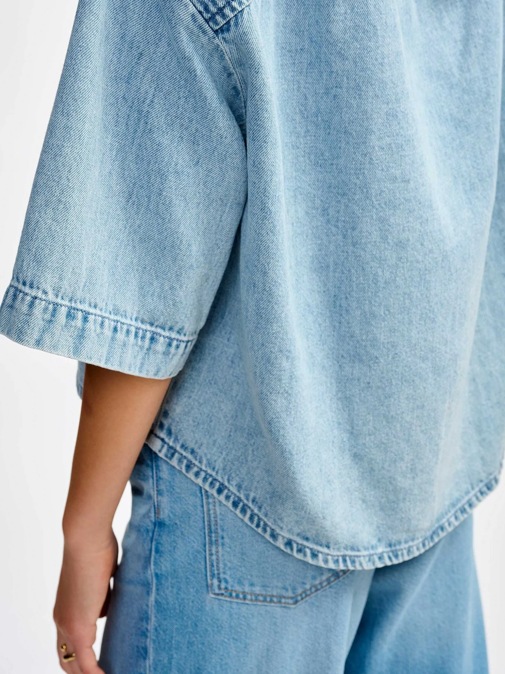 Un Style Rétro Qu’On Emprunte Volontiers Au Bowling. Super Cool, La Chemise Pool Est Coupée Dans Un Denim Léger De Coton, Coton Recyclé Et Juste Assez De Lin Pour Rester Fraîche Tout L’Été. Boxy, Cropped, Oversize, C’Est Un Strike À Tous Les Coups.