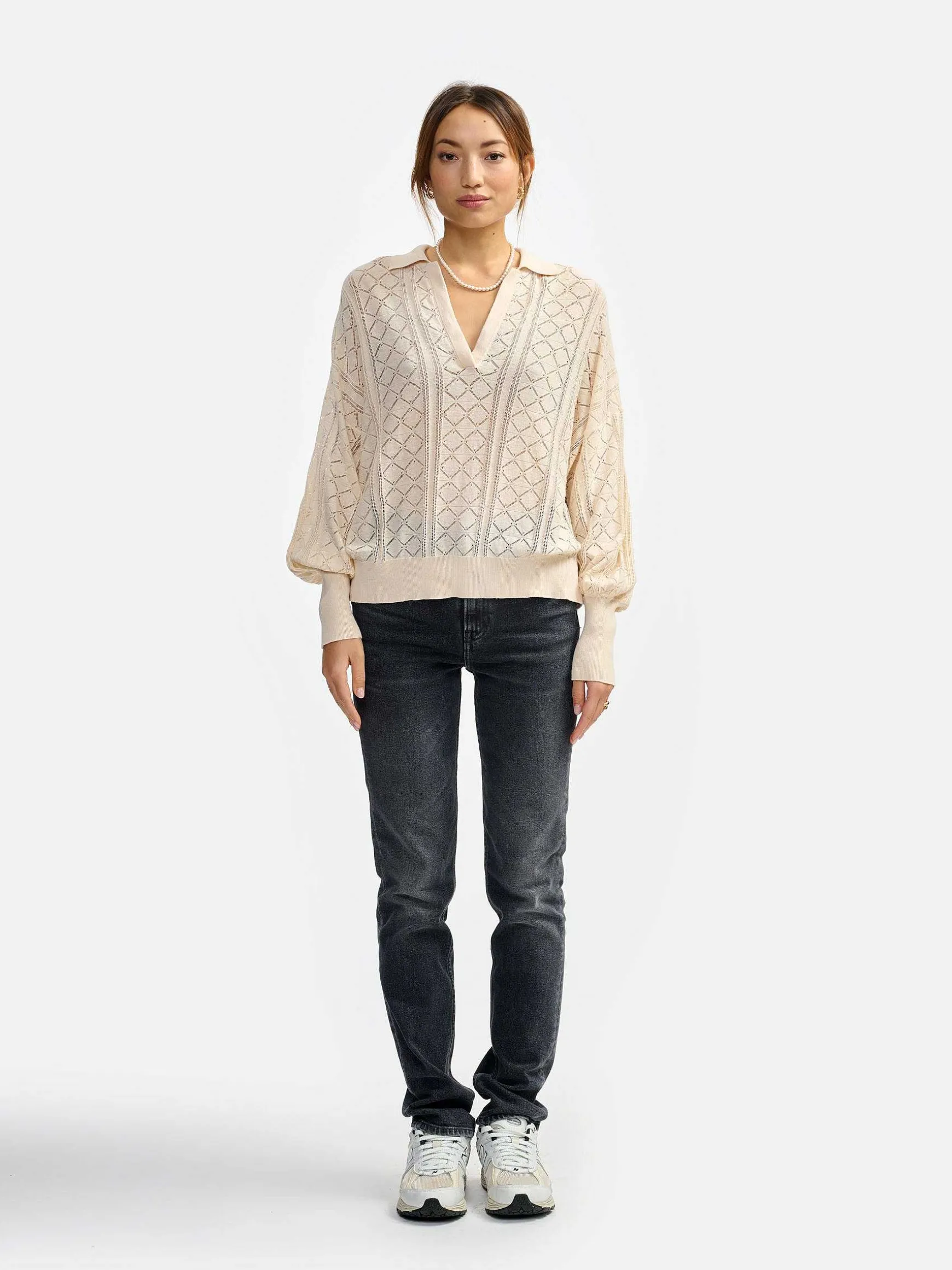 Avec Sa Maille Raffinée, Son Col Polo Et Son Ton Crème Intemporel, Le Pull Dommi Est Un Must Du Dressing Casual-Chic. Doté D’Un Volume Oversize, Il Est Tricoté À Partir D’Un Mélange De Coton Et De Chanvre Qui Vous Laisse Respirer. Le Confort Assuré !