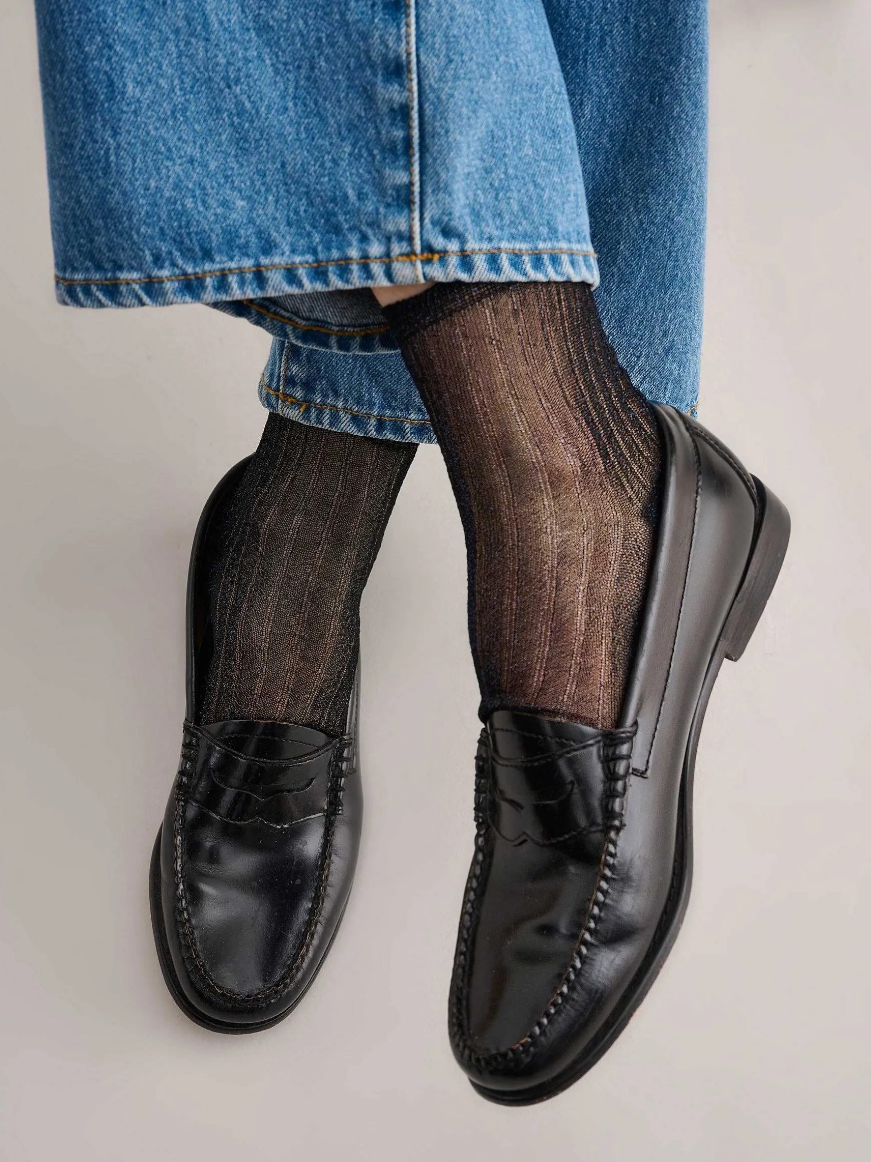 Pas Banales Nos First ! En Maille Côtelée Fine Avec Un Aspect Métallique Et Un Peu Transparent, Elles Apportent Un Détail Tendance Et Une Touche Élégante À N’Importe Quel Look. La Touche Subtile Parfaite Au Bout Des Orteils.