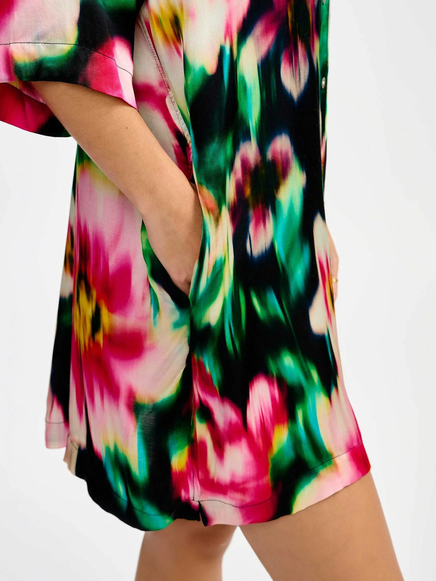 Inspirée Des Chemises De Bowling, La Mini-Robe Planets Est Juste Assez Fun Pour Être Hyper-Branchée. Une Coupe Simple, Confortablement Oversize, Avec Des Fentes Latérales Et Un Pli Creux Dans Le Dos, Le Tout Dans Une Viscose À Fleurs Pour Un Look Extra-Chic.